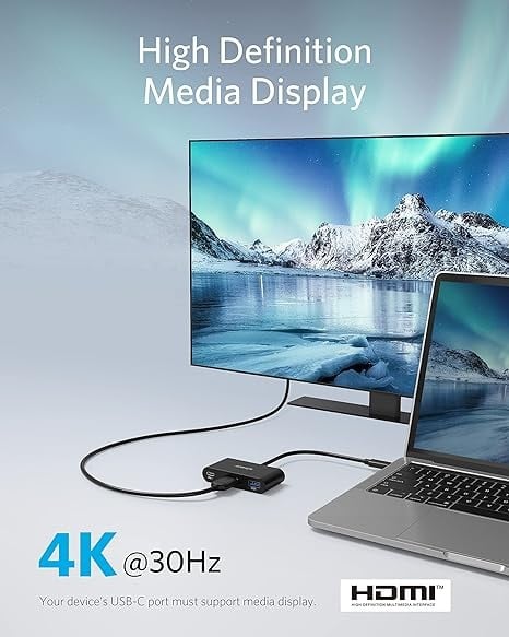 وصلة انكر باور اكسباند 3 في 1 من Type-C إلى HDMI و USB و PD