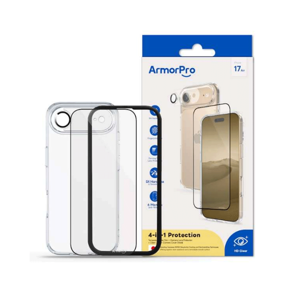 أرمر برو - بكج 4 في 1 حماية متكاملة أيفون 17 أير - شفاف