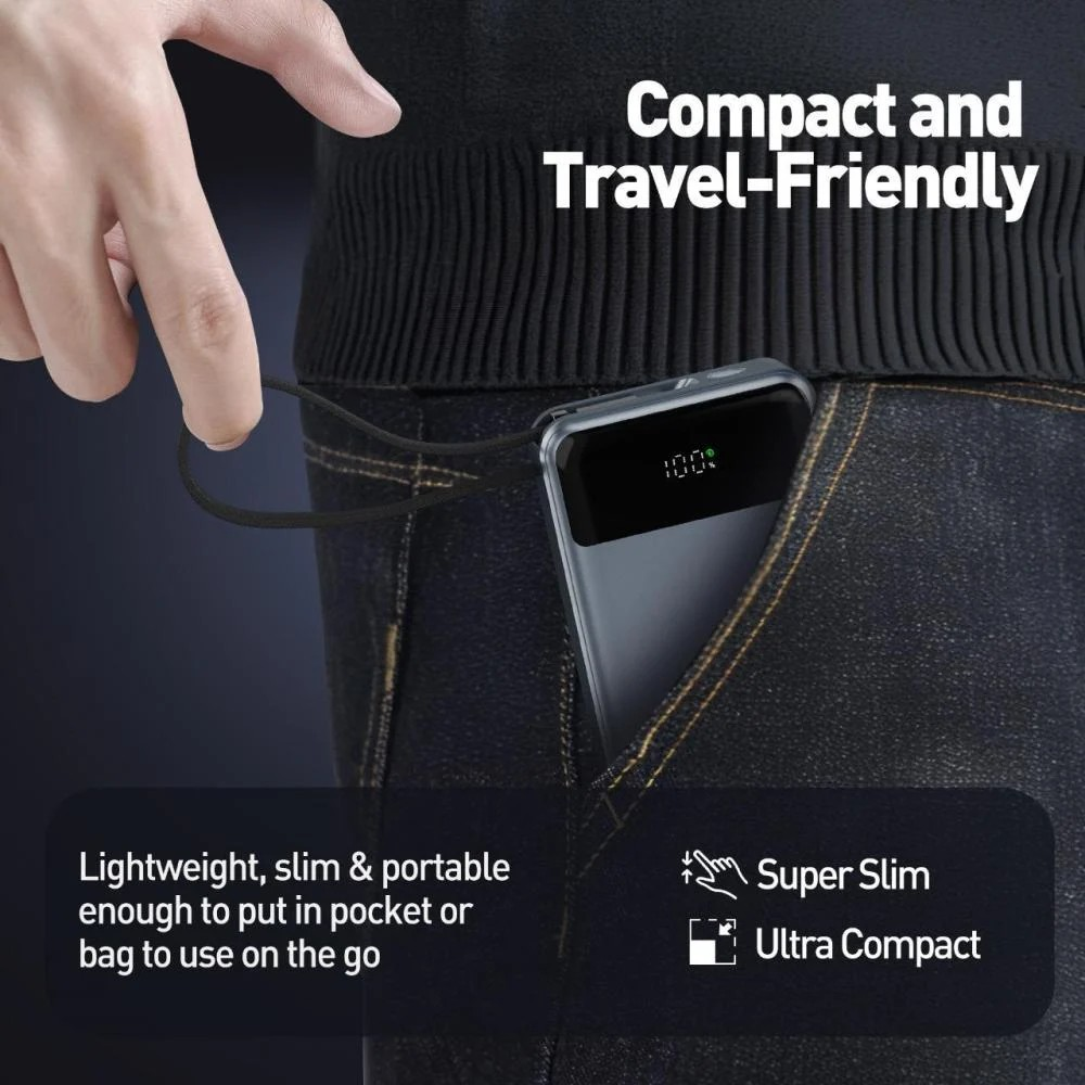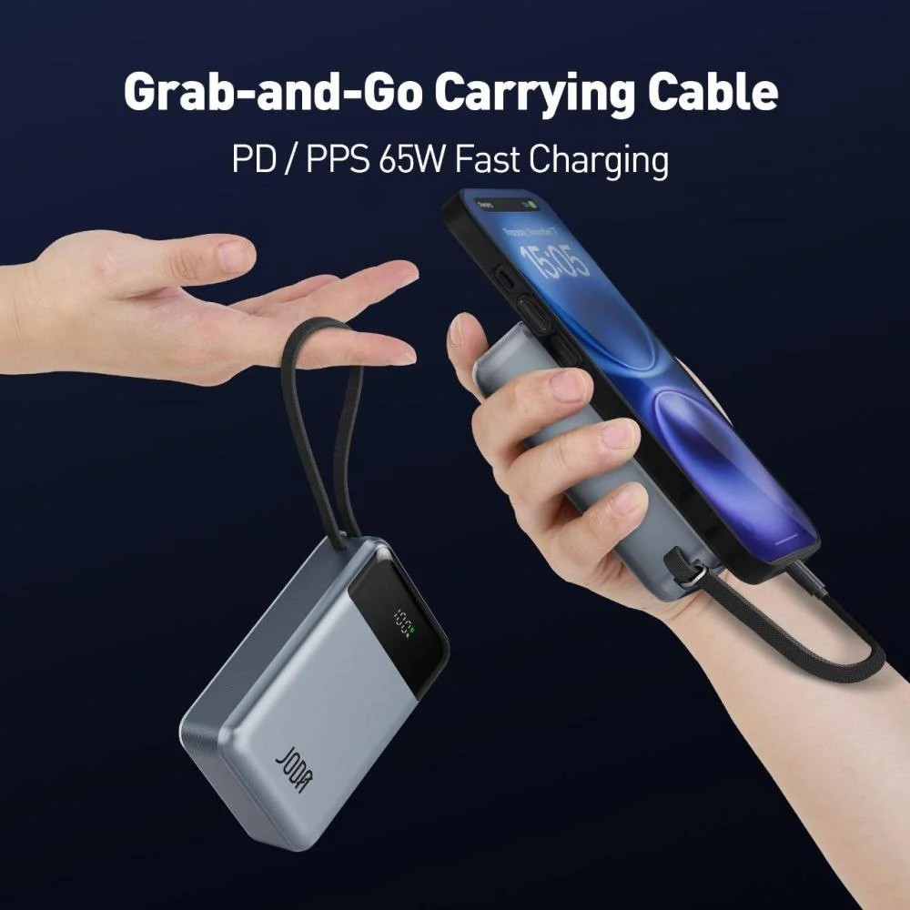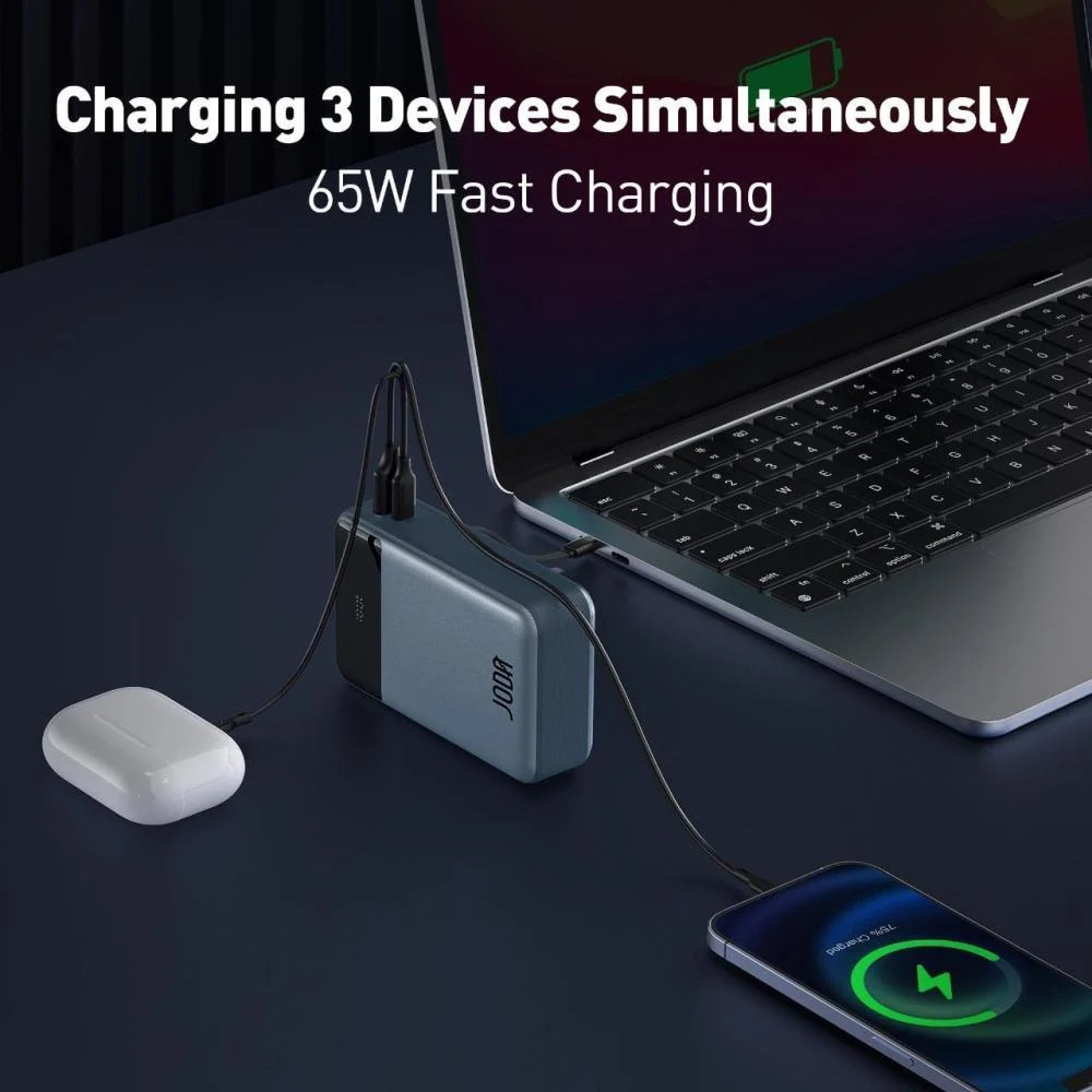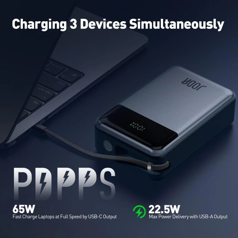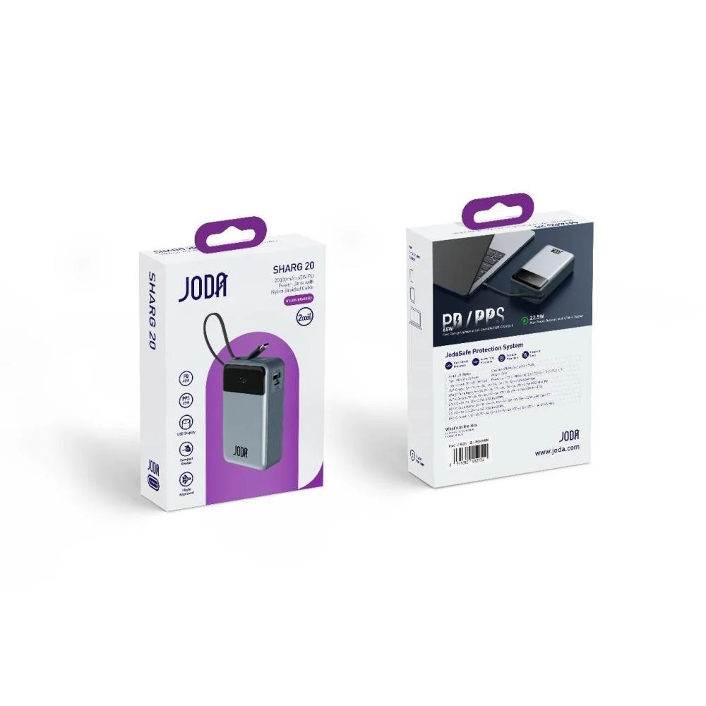 بطارية JODA بسعة 20000 مللي أمبير بقوة 65 واط بمنفذ Type-C ومنفذ USB مع سلك Type-C مدمج