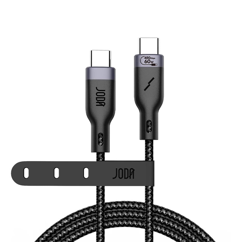 كيبل JODA نايلون تايب سي الى تايب سي بقوة 60 واط بطول 1متر - اسود