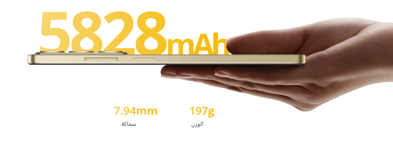 تصميم مريح للقبضة، مع بطارية بسعة 5828 مللي أمبير