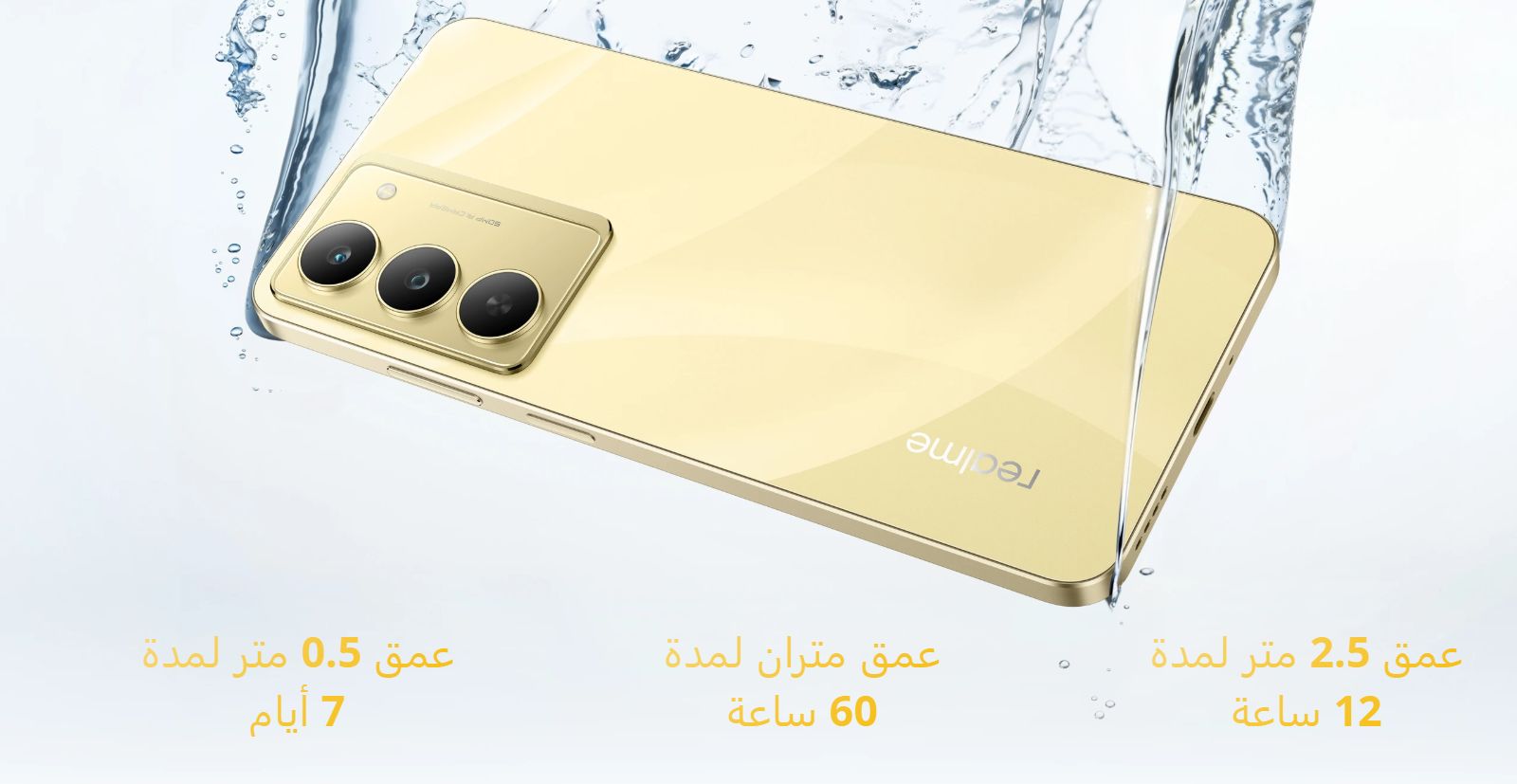 جهاز realme C75 5G يتفوق في اختبارات IP69 و IP68 و IP66 بمقاومة مياه لا مثيل لها. ماء ساخن؟ غمر كامل؟ مياه نفاثة؟ لا داعي للقلق.