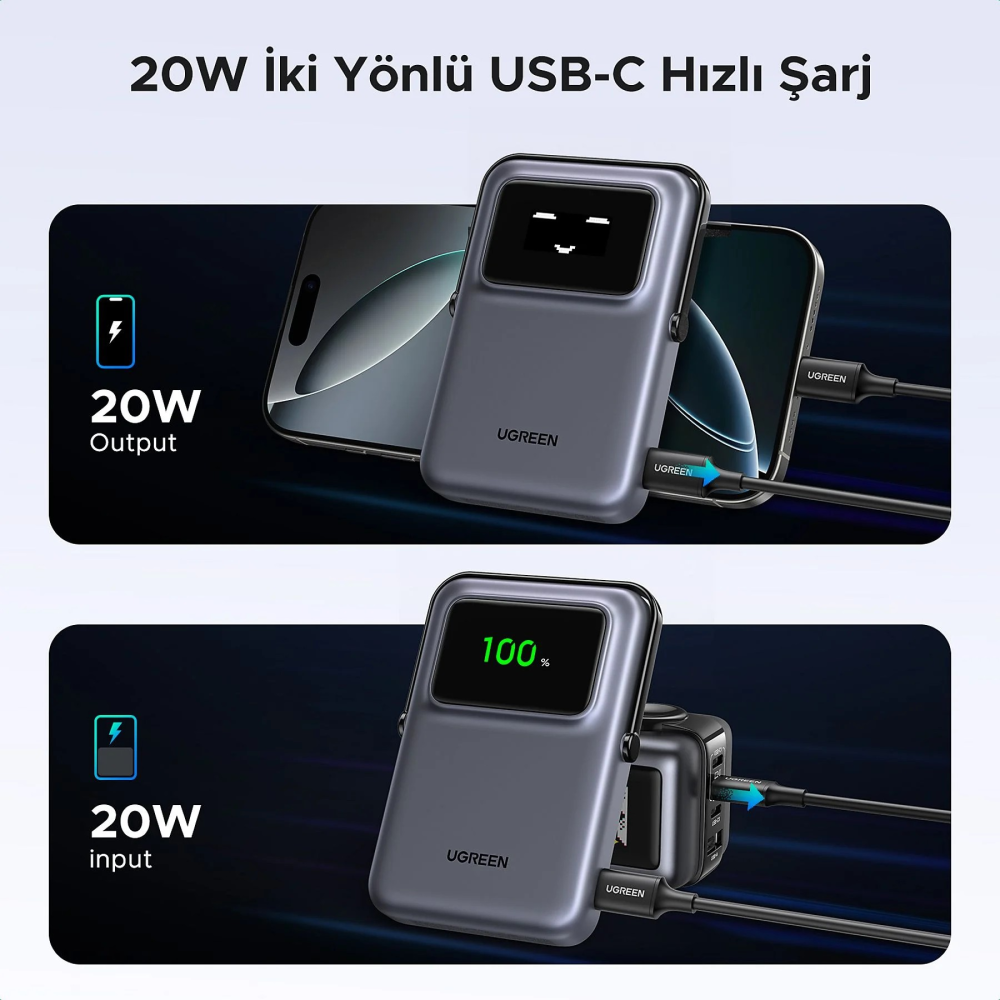يوجرين شاحن متنقل لاسلكي سعة 10000 ملي أمبير 20 واط - أسود