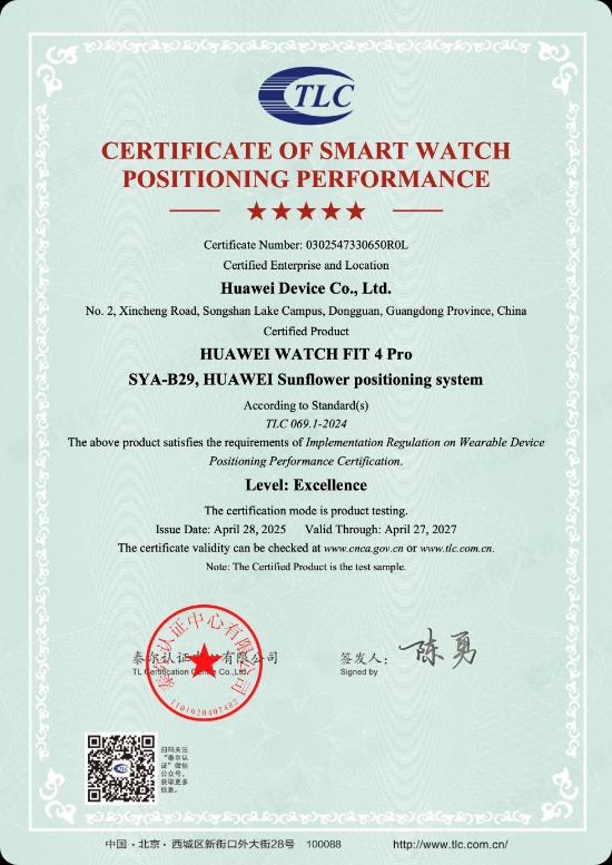 حصلت أجهزة سلسلة HUAWEI WATCH FIT 4، المدعومة بنظام HUAWEI Sunflower لتحديد المواقع، على شهادة الأداء "ممتاز" في تحديد المواقع من قبل مركز اعتماد TL.